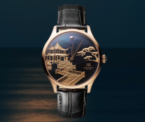 2022年,上海表复兴系列汲取豫园的园林意境,推出新品——九曲映月。九曲映月腕表呈现黑白双版40毫米表盘,黑色贝母表盘附以Au750金雕,白色贝母表盘搭配Pt950铂金雕刻,象征豫园昼夜。线条利落挺拔的九曲桥由表盘底部延伸至左侧的小亭,呈现极具艺术美感与意境的中式园林之景。表盘右侧探出前枝的松柏树是深受东方文化喜爱的象征表达,与松枝下方的书法体标识「SHANGHAI Since 1955」一同表达中西融会之意。表盘所呈现场景虚实交错,叠山理水、楼阁参差,同青松朗月构成了一个似真似幻的理想之境。腕表搭载SW300瑞士自动上链机芯,每小时摆频28800次,最高可达42小时动能储存,见证昼夜更迭。