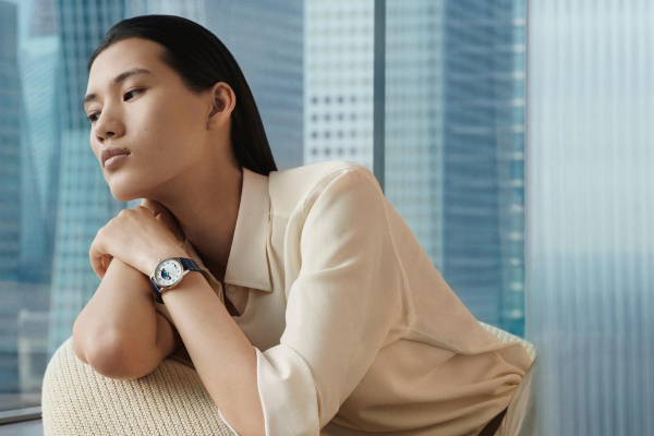 万宝龙宝曦系列昼夜显示腕表于表盘上勾勒出浪漫的日月星辉之境。蓬松的云朵以珍珠母贝打造而成,崭新设计的昼夜显示视窗以白昼和夜晚不同层次的蓝色天空,别具一格地呈现日升月落。当午夜降临,腕表表盘上的太阳状时针将与月亮相遇,代表着太阳打破恒定的物理规律,在朦胧夜色中亲吻着月亮。