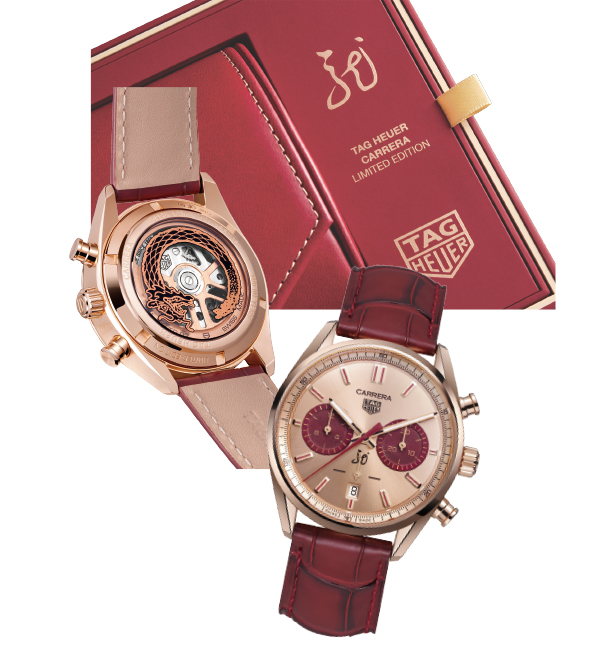 TAG Heuer泰格豪雅为2024中国新年推出两款限量版腕表,致献即将到来的龙年。作为一种并不存在于现实世界中的生物,龙在中国十二生肖中非常独特,并在中国文化中占据特殊地位。为了迎接中国龙年,瑞士先锋制表品牌TAG Heuer泰格豪雅推出一对限量版时计,将中国文化的丰富内涵与泰格豪雅的赛车基因融合,在彰显传统与创新的同时,展现了龙年的精髓。腕表中央的红色漆面指针,将人们的注意力引向6点钟位置的一幅低调而意义深长的书法体“龙”字——这是与中华文化紧密相连的象征,不断唤起人们对力量与繁荣的信念。这幅“龙”字不仅是对传统的致敬,也彰显了泰格豪雅在现代感的设计中尊重历史传承的承诺。腕表表背为完全的定制设计,蓝宝石镜面上压印有一个中国龙的形象。围绕其的外圈特别镌刻了表明腕表限量发售的字样:除了“Limited Edition”(限量版),精钢版本镌刻的是“One of 300”,代表这款腕表限量300枚;而更具专属感的18K 5N玫瑰金版本则镌刻“One of 50”,代表限量50枚。