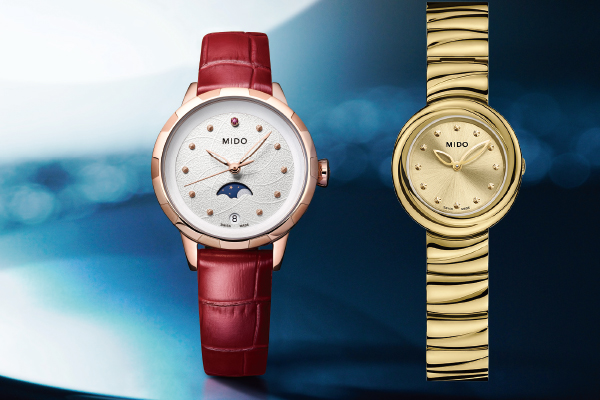左起:瑞士美度表云漫之境系列腕表;瑞士美度表花淅系列月相腕表。