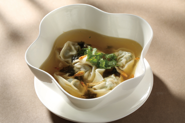 来自衡山玖弄的海派甬菜,看似朴素简单的家常馄饨,是上海人乃至浙江一带餐桌常客,主厨选用精致的樱花虾,为家常美食独特元素,樱花虾颜色鲜艳美丽,肉质甘甜浓郁,虾拔去虾线、去壳切碎,与青菜一起剁成肉糜,一起包裹在馄饨皮中,隔着晶莹剔透的皮也可以看到红色的虾肉,饱满而又紧实。