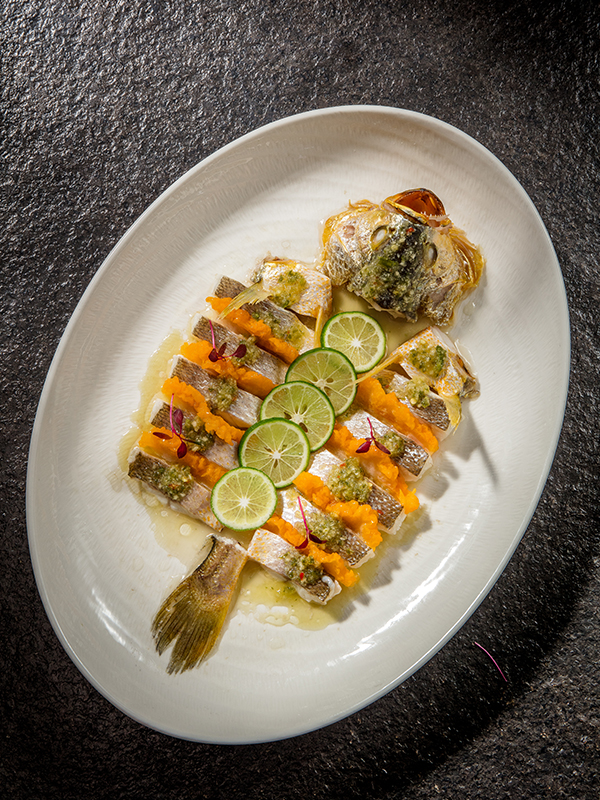 这道柑橘盐腌黄鰤鱼,选用柚子油醋汁与新鲜黄鰤鱼的互相碰撞,使鱼肉本身的鲜味得到了保留,墨西哥辣椒激发滋味,同炙烤后的橙肉一起入口,恰到好处的果香点缀,留下无限回味。上海镛舍 Café Gray Deluxe 精选本地时令食材,烹制亚洲风的当代欧陆美食。在宾客享受佳肴的同时,充满创意的手工鸡尾酒总能为其带来别具一格的饮品体验。新主厨王佳晔曾任职多家知名酒店及米其林餐厅Le Comptoir de Pierre Gagnaire,对欧陆菜拥有独到解读,用菜品彰显个人风格。