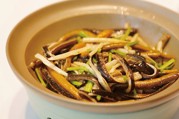 来自厢房·海上花的酸笋爆白鳝,把地道的本帮菜经典和时下流行的创意相融,承载上海及周边水乡市镇的一道传统名菜“响油鳝丝”是这道爆白鳝的基础,精选优质的鳝丝新鲜现划,与酸笋丝爆炒,酸笋带着劲爽的酸味,既能解腻又能提鲜,是不同于“响油”浓厚本帮口味的,一筷子夹起酸笋和鳝丝同时送入口中,是酸爽鲜脆的滋味,忍不住多夹几筷子。